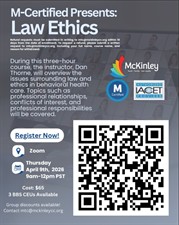During this three-hour course, the instructor, Dan Thorne, will overview the issues surrounding law and ethics in behavioral health care. Topics such as professional relationships, conflicts of interest, and professional responsibilities will be covered.